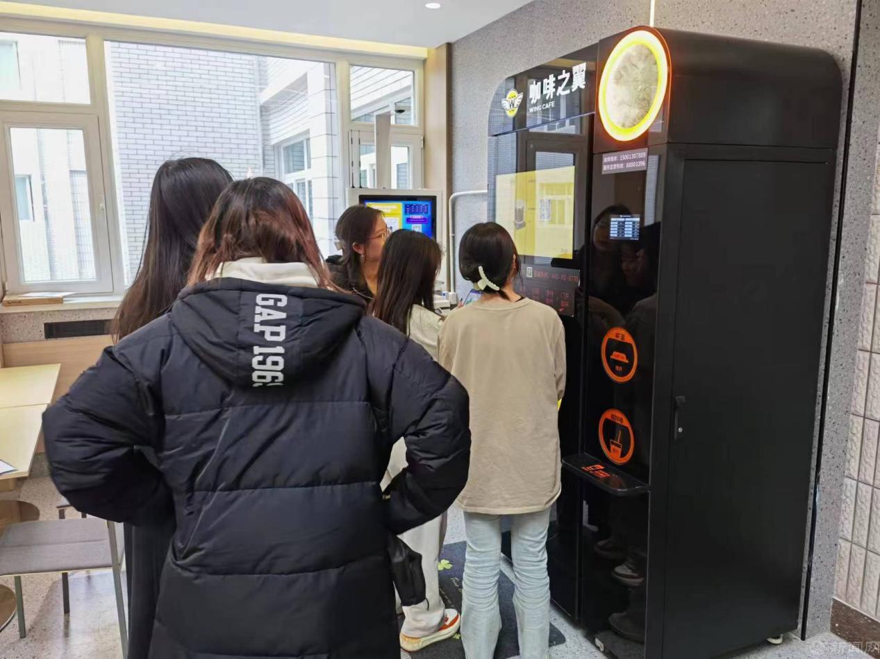 新自助设备的投放提升了校园学习生活的品质,受到同学们的广泛欢迎。在投放当日,现磨咖啡机前排起了长长的队伍。有同学在朋友圈发文:“宿舍以后不用出楼吃喝不愁了!”