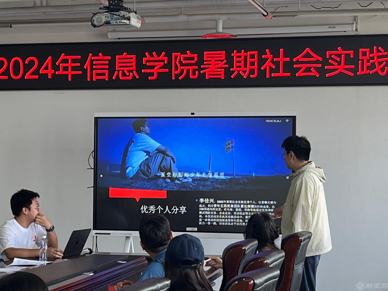 火热的夏季,火红的青春。为深入学习贯彻党的二十大精神,引领和帮助广大青年在社会实践中受教育、长才干、做贡献,以青春建功的实际行动,为实现中国式现代化贡献青春力量,7月3日下午,信息学院在瀚学楼1014会议室召开2024暑期社会实践交流会,交流部署2024年暑期社会实践活动相关工作。历届暑期社会实践团队优秀代表和全体2024年暑期社会实践团队队长及部分成员参会,会议由学院团委书记杨和家主持。