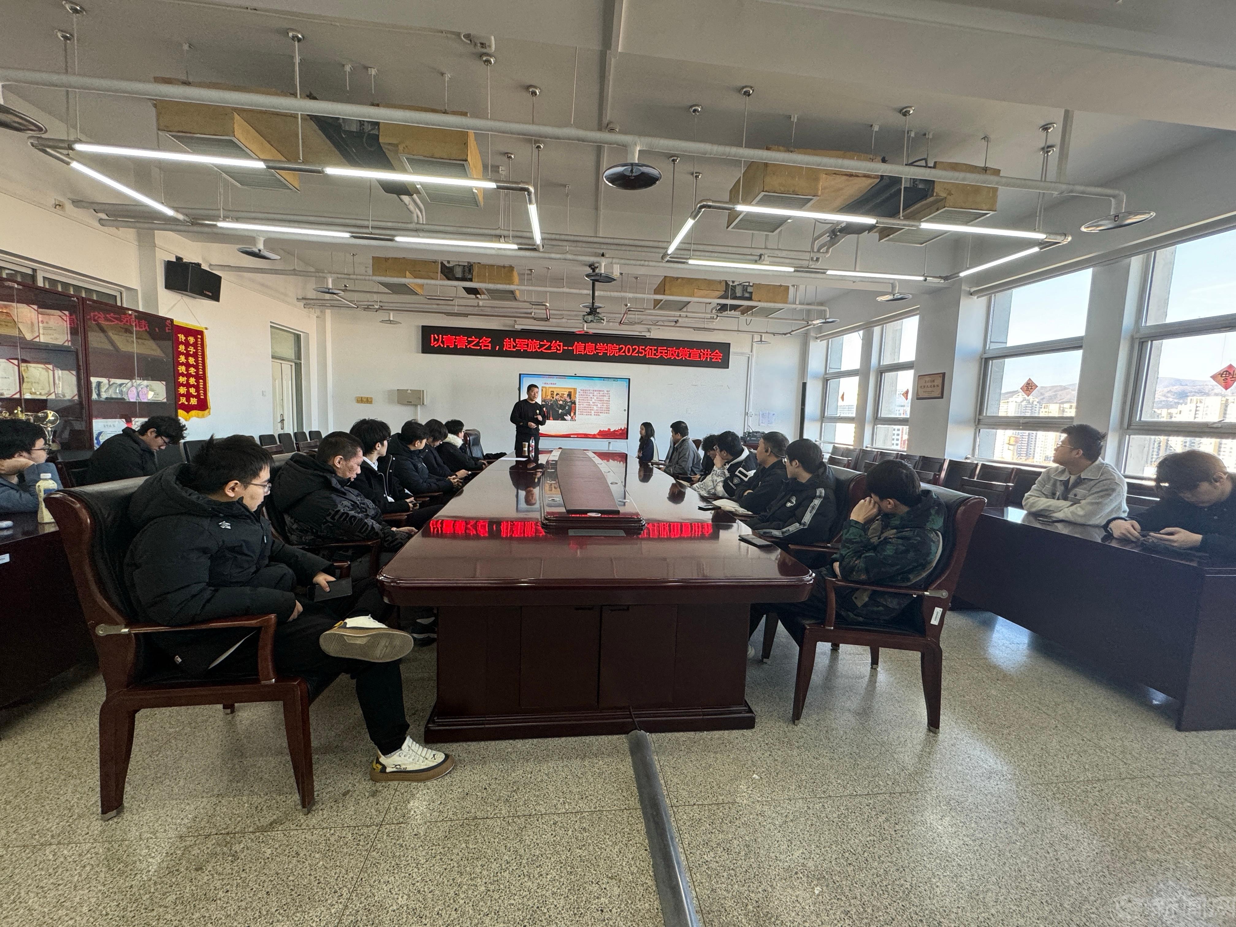 为切实做好2025届毕业生就业指导服务工作,帮助毕业生了解当前就业形势和政策,鼓励毕业生投身国防事业,拓宽2025届毕业生就业渠道。2024年12月17日,信息学院在瀚学楼1014组织开展2025届毕业生的征兵政策宣讲会,本次政策宣讲会由武装部苏宁老师主讲,2025届毕业生辅导员魏静、田庆玥以及2025届征兵意向毕业生代表参加。