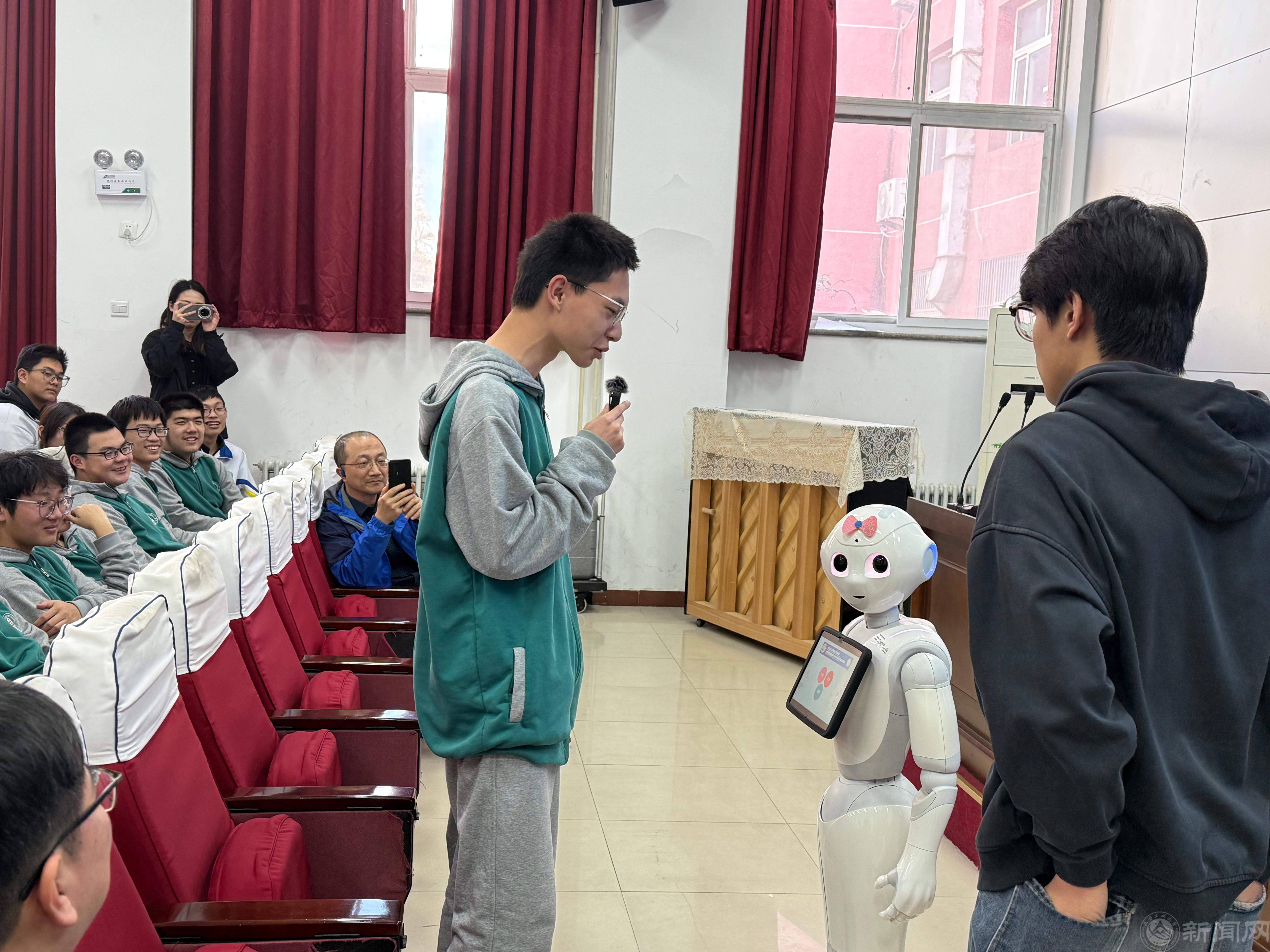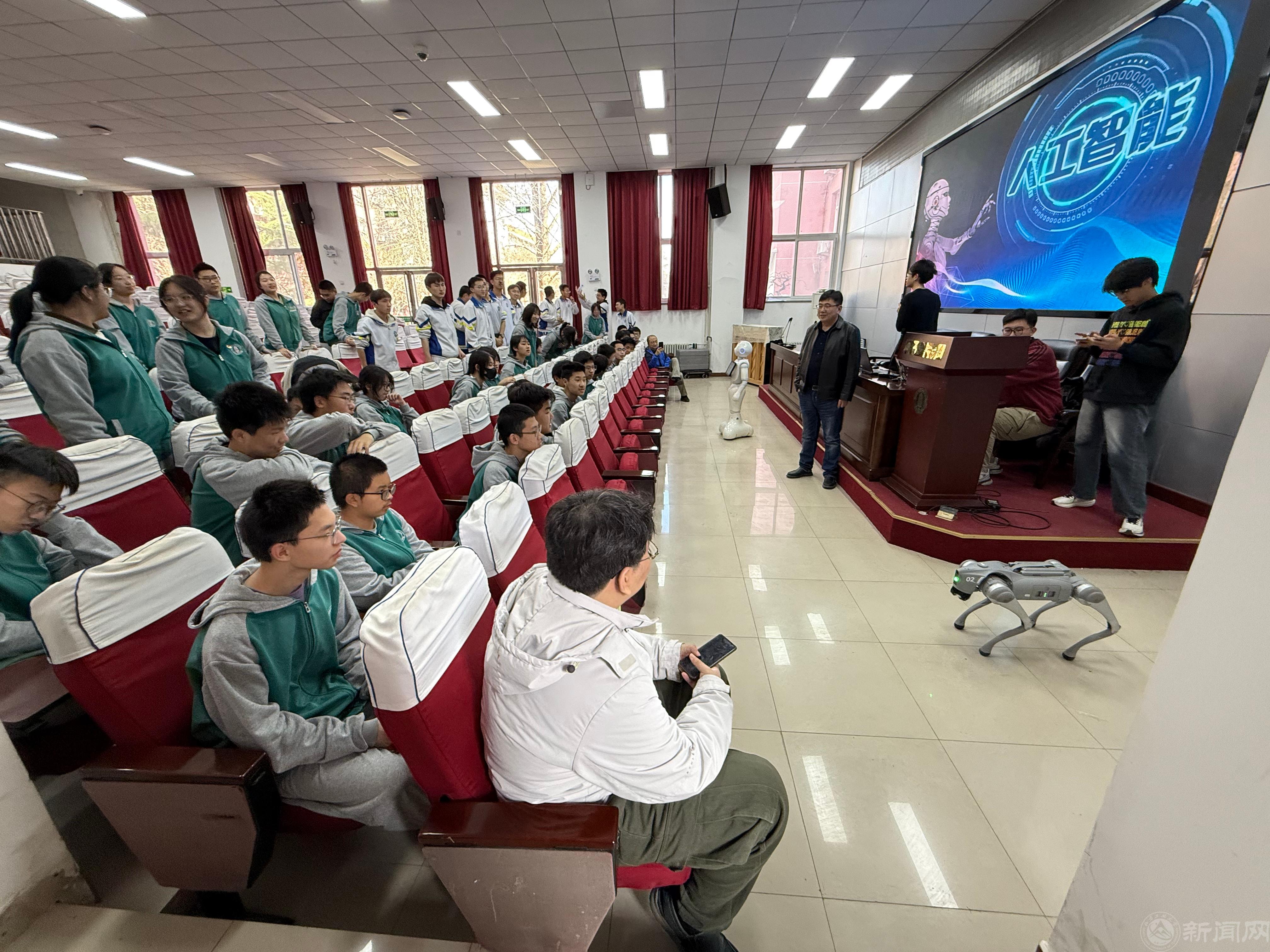 活动中,由智能机器人“小毓”作为“宣讲员”,向北京市第十中学高中部的同学们介绍了ballBET贝博BB艾弗森办学历史、办学特色、招生政策以及信息学院及人工智能专业情况,并为同学们做了人工智能的科普报告。之后“小毓”还表演了舞蹈、开放式对话及“AI猜年龄”等才艺。随后,还为同学们演示了“四足机器狗”这款新颖的“科技萌宠”。智能机器人“小毓”及机器狗的诸多功能都由人工智能专业本科生研发,她可以通过基于计算机视觉的人脸检测技术猜出同学们的年龄,还可基于大模型与同学们进行幽默地问答和会话,可以通过手势控制机器狗做动作,这些都引发同学们阵阵惊叹,激起了同学们对智能技术的好奇心,并将活动气氛推向高潮。