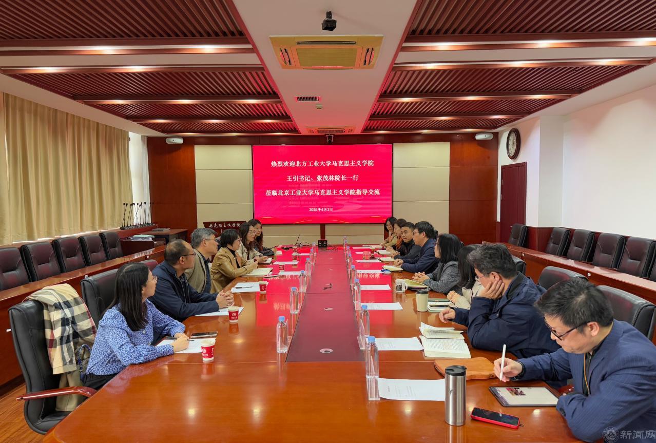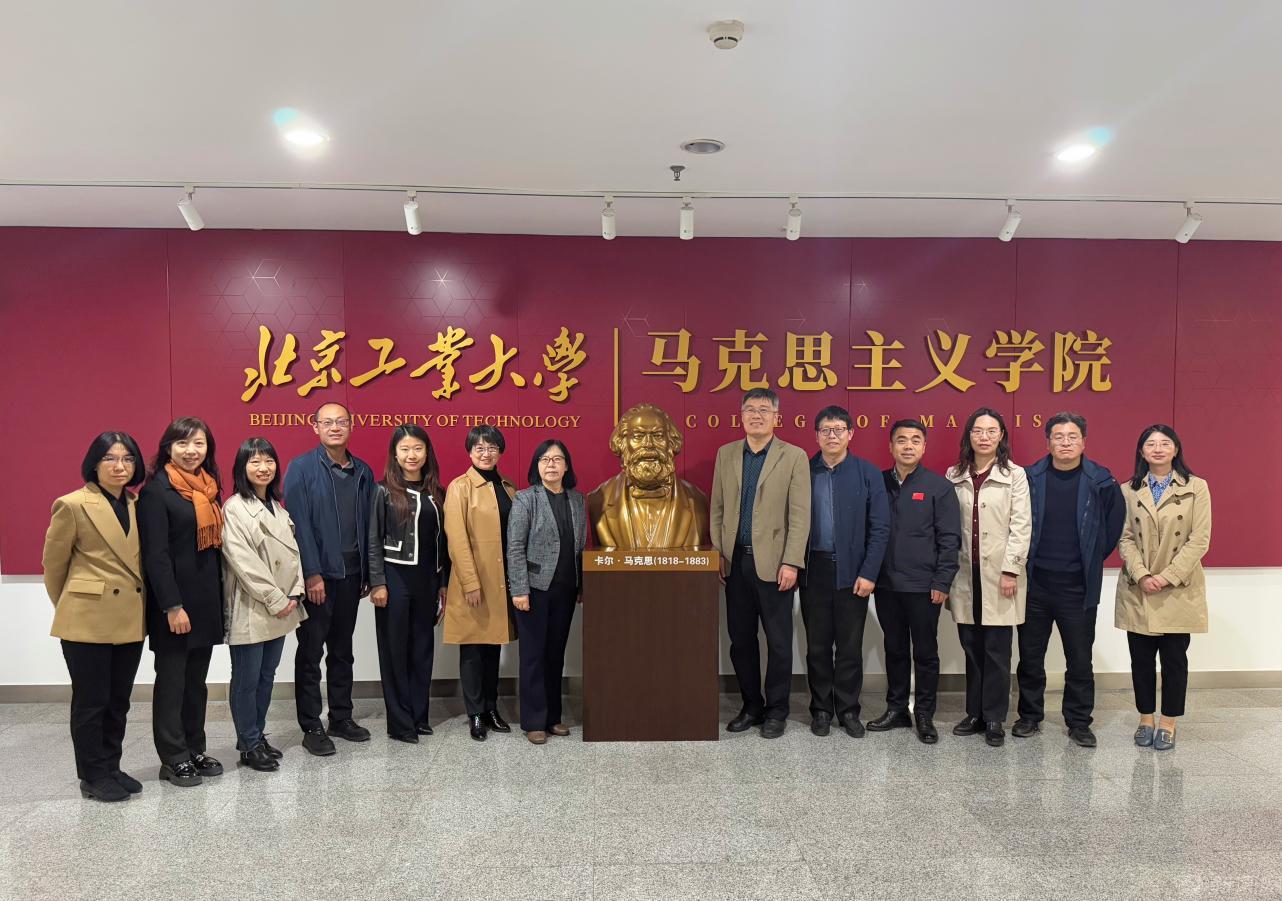 为学习北京市重点马克思主义学院及思政课建设的先进经验,4月3日下午,贝博官网马克思主义学院党委书记王引、党委副书记、院长张茂林率队一行前往北京工业大学马克思主义学院进行调研交流。北京工业大学马克思主义学院党委书记安哲锋、党委副书记、院长丁云等领导热情接待并出席了调研座谈会。