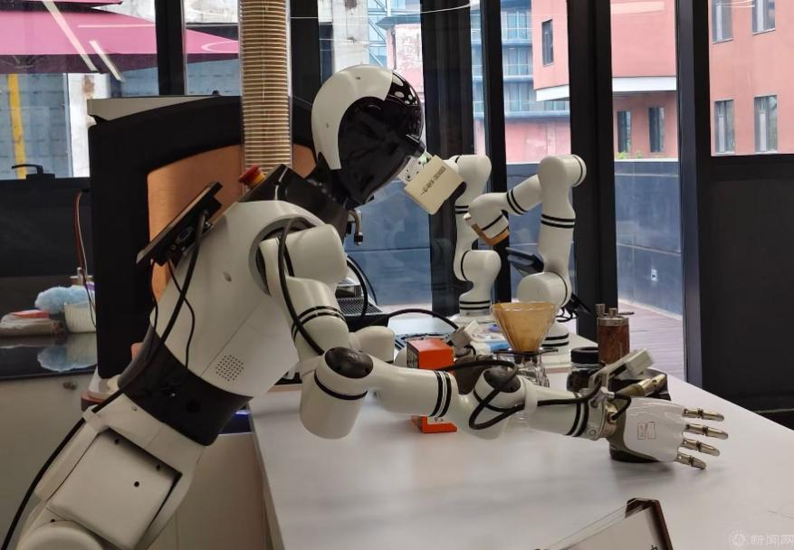 占地3000平方米的实景实验室展现了机器人应用的突破性进展:智能餐饮区双臂机器人“小睿”以0.1毫米级精度复刻咖啡拉花技艺,动作数据实时上传云端模型;智能家居区机器人实现任意形状毛巾的精准折叠。工程师指导学生分组操控机械臂完成闭环训练流程,揭示每项操作背后触觉、视觉等十余类数据的采集价值。