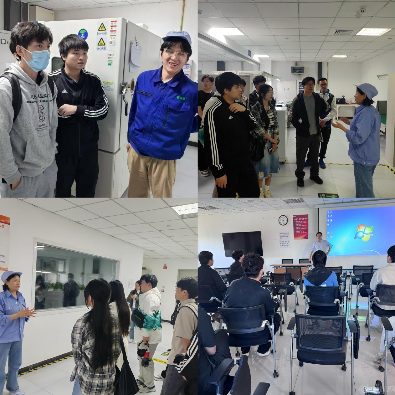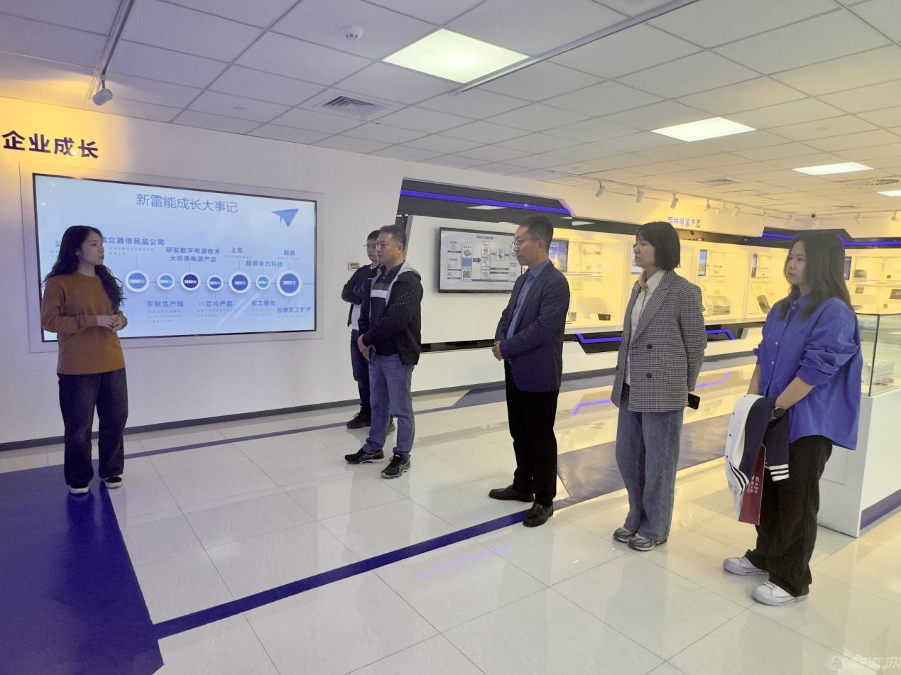 在企业负责人引导下,学院教师一行首先走进新雷能科技产品展厅,沉浸式感受高可靠电源领域的技术魅力。展厅内,代表行业顶尖水平的航空航天用电源模块、5G通信基站电源系统、数据中心高效供配电设备有序陈列,部分产品上“应用于某载人航天工程”服务全球Top3通信设备商的标识格外醒目。求职学生们在学长的带领下,一同走进企业实验室,近距离体验真实工作场景,触摸职业未来,直观感受行业发展对电子信息类人才的能力要求。