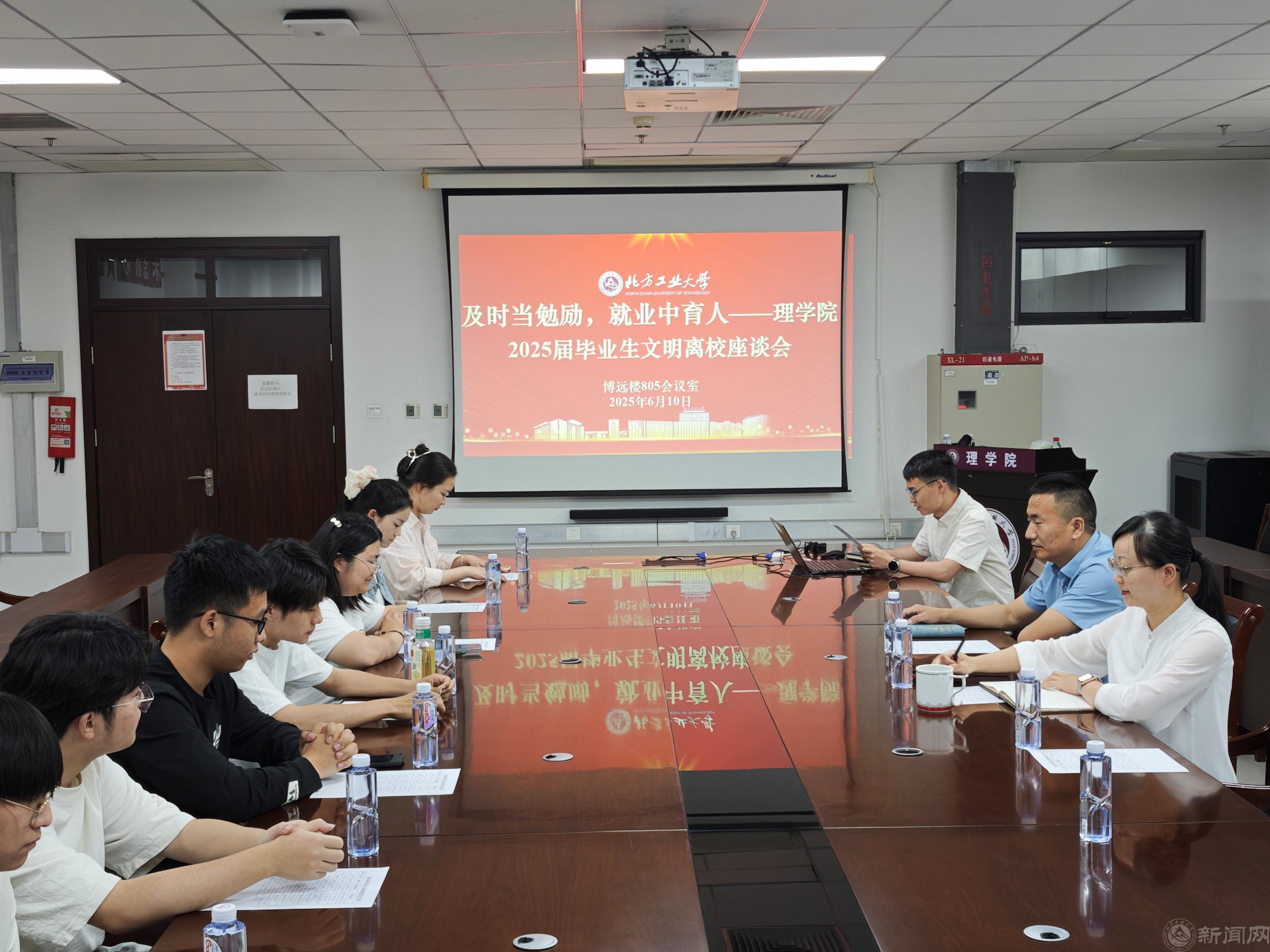 春风数理润桃李,学子心声话别情。为更好地倾听毕业生心声,充分了解毕业生就业、学习、生活现状,6月10日,理学院在博远楼805召开2025届毕业生文明离校座谈会。理学院党委书记杨嵩松、党委副书记贺映勇、毕业班辅导员熊敏与2025届毕业生代表面对面交流,共同回顾成长历程,共话未来发展。