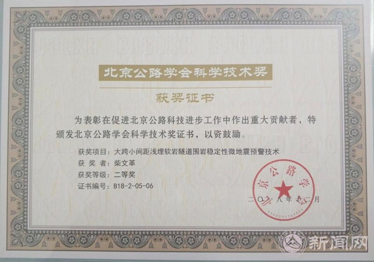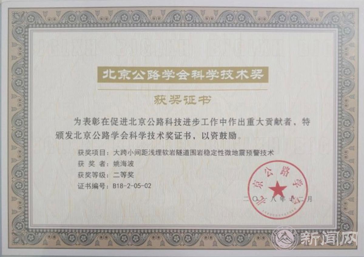 日前,从北京公路学会获悉,贝博官网土木工程学院姚海波教授带领的科研团队获得2018年北京公路学会科学技术奖二等奖。
