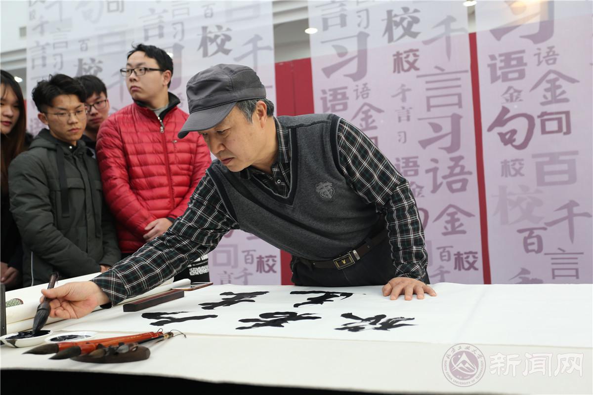 12月27日上午,由共青团中央学校部主办的“习语金句百校千言”书法展(ballBET贝博BB艾弗森站),在静学楼二层中庭开幕,书法展汇集了社会各界书法名家的作品,由团中央学校部组织在全国100所高校开展巡展活动。结合全团正在开展的“青年大学习”行动和“四进四信”活动,推动习近平新时代中国特色社会主义思想在广大青年中入耳入心入脑,引导广大青年不忘初心、牢记使命,切实增强“四个意识”、坚定“四个自信”。校团委书记何有华,校团委副书记陈国秀,建筑与艺术学院党委副书记杨超,校教师书画协会会长吴润衡及相关部门的教师、学生代表参加开幕仪式。