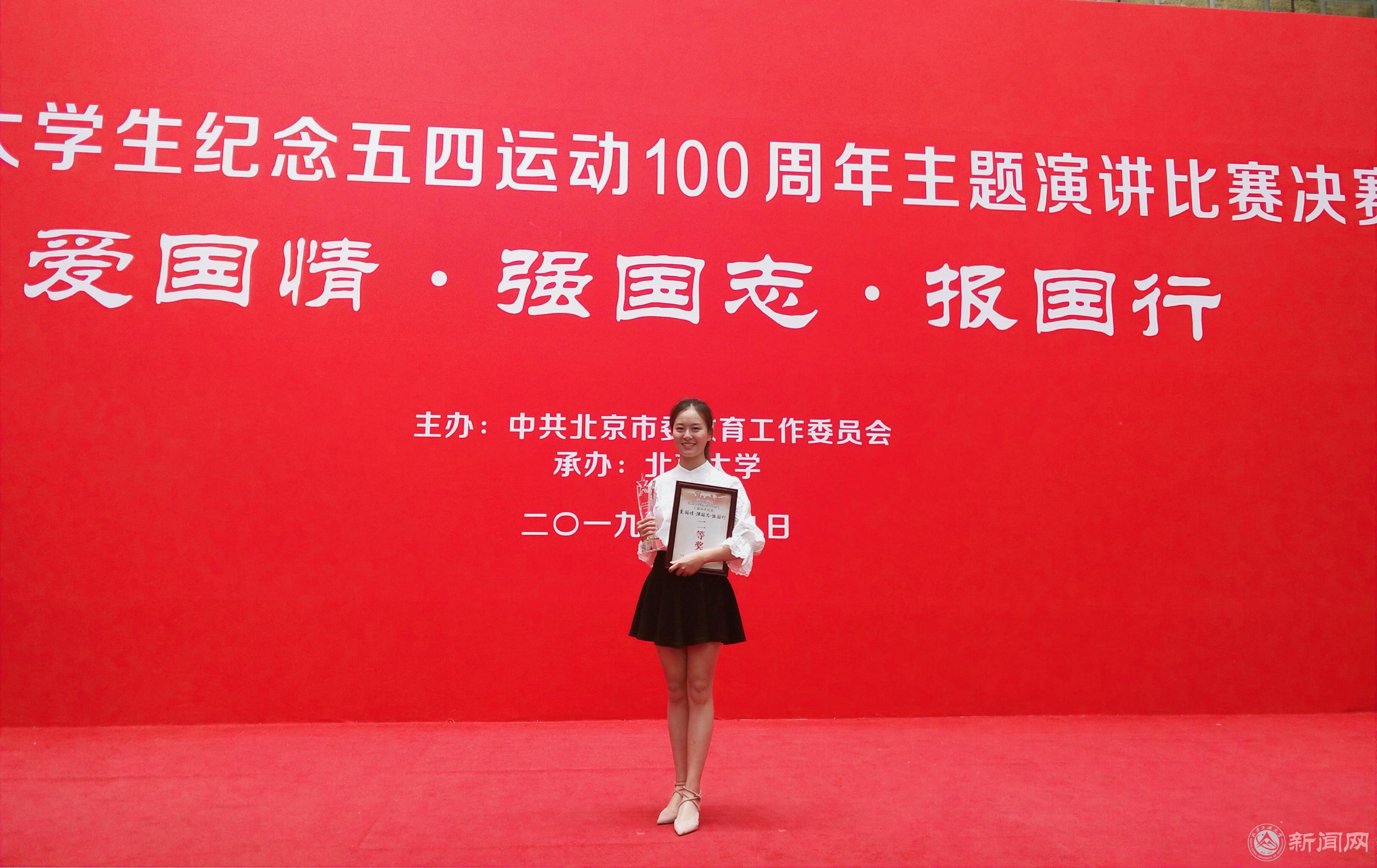 5月9日, “爱国情 强国志 报国行”首都大学生纪念五四运动100周年主题演讲比赛在北京大学英杰交流中心举行,代表贝博官网参赛的计类18-7班江泠睿同学以95.3分的成绩荣获二等奖。
