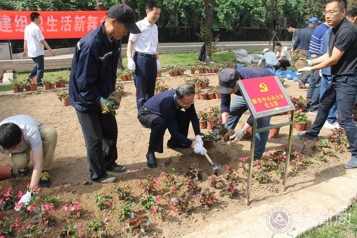 为创建更加美好、舒适的校园环境,进一步增强党员凝聚力,5月16日上午,服务中心党委组织全体党员、入党积极分子在校园超市南侧绿地开展“美化校园环境,你我一起行动”花卉种植主题党日活动。副校长胡应平应邀参加此次党日活动。活动由绿化环卫党支部书记黄晓鹏主持。