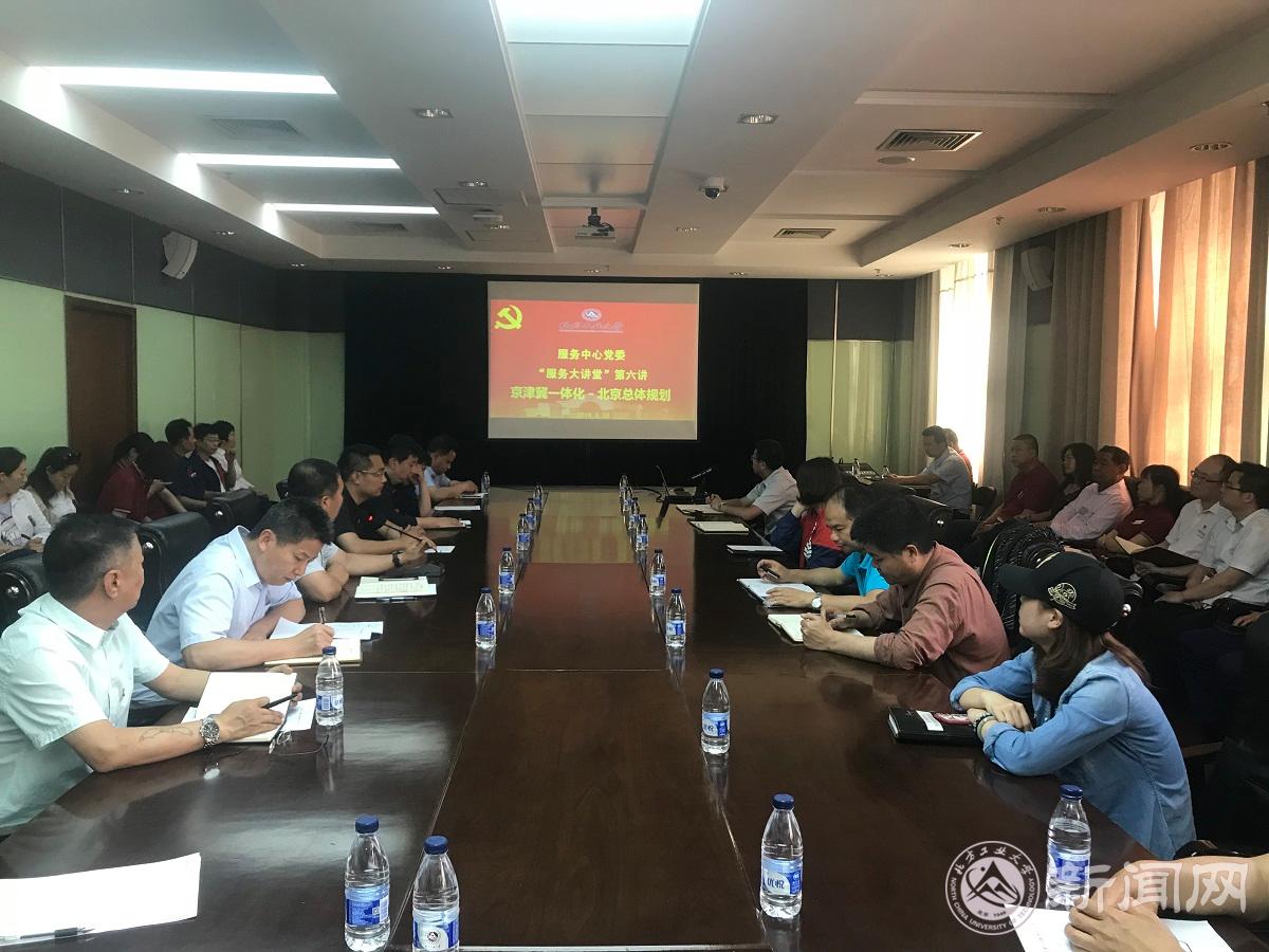 服务中心党委委员梁雪松作了题为《京津冀一体化——北京城市总体规划》报告。报告从北京城市定位变迁、北京城市空间布局、措施规划、展望未来四个方面深入浅出讲解,同时,他指出,北京城市总体规划以习近平总书记两次视察北京重要讲话和中央政治局审议北京城市总体规划时的重要讲话为根本遵循,充分考虑了北京城市发展的诸多深层次矛盾以及首都发展面临的新形势、新机遇,是实现中华民族伟大复兴中国梦北京篇章的行动蓝图。