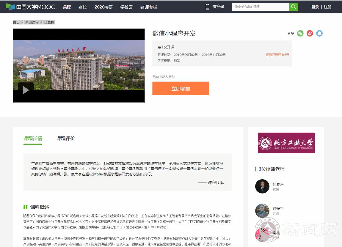 8月26日,由信息学院杜春涛老师、付瑞平等老师负责的《微信小程序开发》课程在“中国大学MOOC”平台成功上线,课程将于2019年9月2日正式开课。这是目前为止在国内主流MOOC平台(爱课程、学堂在线、智慧树等)上线的第3门与微信小程序开发相关的MOOC课程。