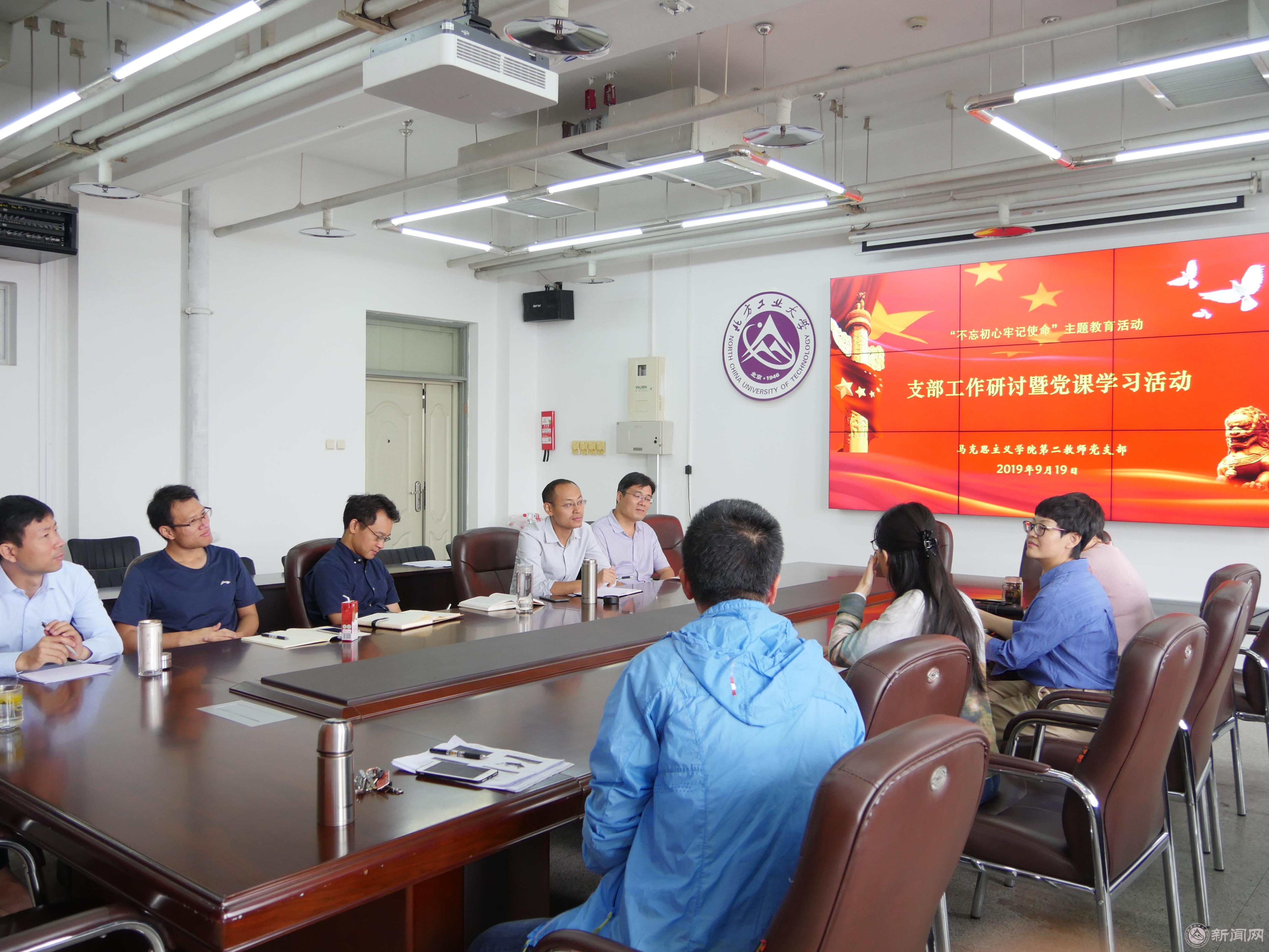 学院第二教师党支部也迅速响应,组织召开了“不忘初心、牢记使命”主题教育工作研讨暨党课学习会。支部党员纪萍萍同志结合思政课教学实际,分享了一次关于如何让思政课走近学生生活的专题党课;支部书记王洁敏同志带领大家讨论了如何把学校和学院工作部署落实到教学中的建议,明确了支部工作的着力点。