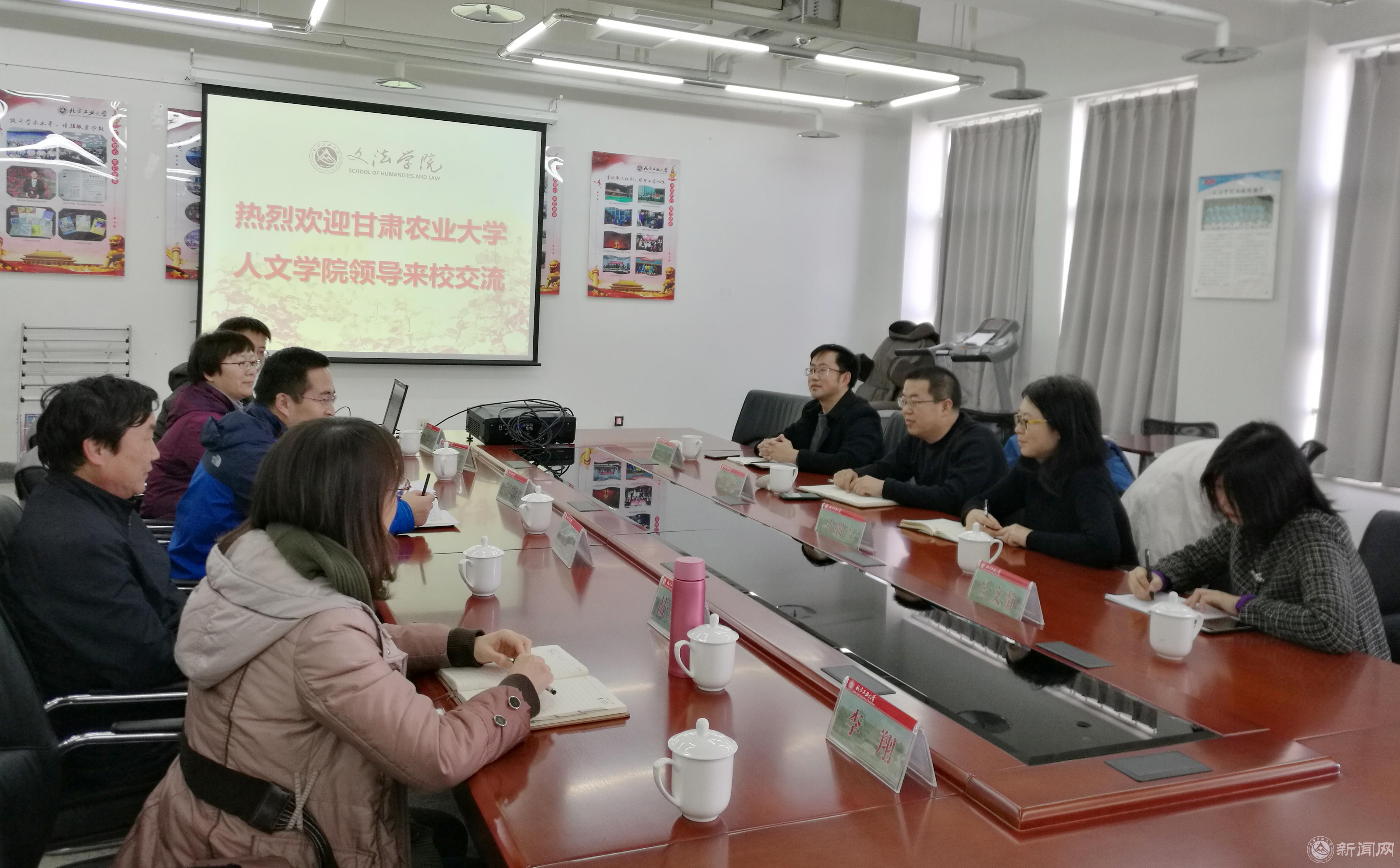 12月17日下午,甘肃农业大学人文学院英语系马瑞雪主任一行4人来贝博官网调研英语专业教学与大学英语教学改革工作。文法学院党委书记袁本文、副院长袁凤识、公共英语系主任高越、副主任战凤梅、英语系教师李翔及高黎老师参加了会谈。