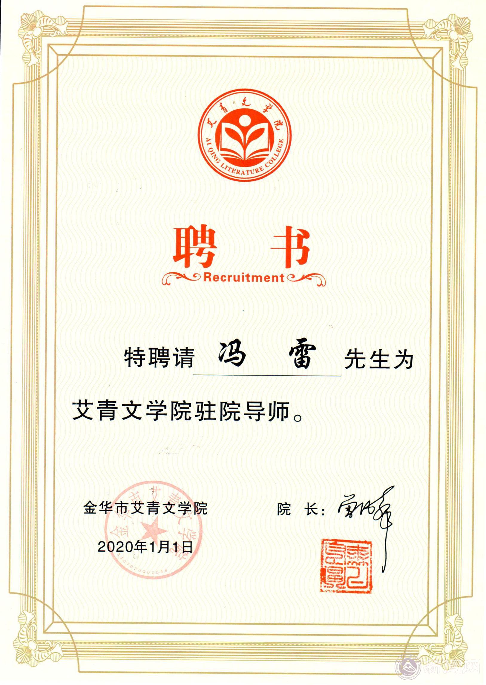 近日,贝博官网文法学院中文系教师冯雷被艾青文学院聘为驻院导师。