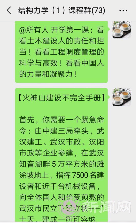 辅导员们时时关注疫情动态,借助新媒体等手段,深入学生党团支部、班集体集中宣讲防疫知识和防控政策,号召学生用实际行动抵制谣言,从思想上行动上与中央保持一致,与学校团结一心,共克时艰。土木工程学院党委副书记张少波利用《力学结构》在线课程,通过武汉火神山医院建设的生动例子及时开展“课程思政”,他对学生们说:“看看土木建设人的责任和担当!看看工程调度管理的科学与高效!看看中国人的力量和凝聚力!”学生们被这个非常时期的非常工程所深深打动着,坚定了学好专业知识将来报效祖国的信心。