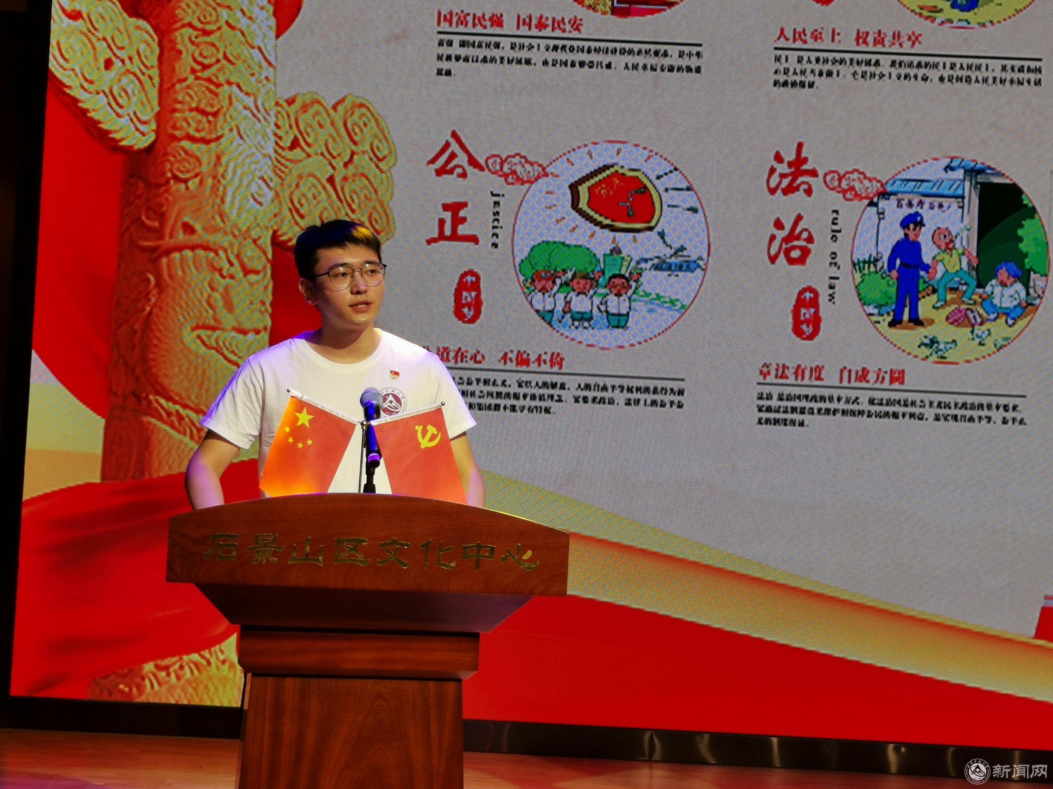 9月29日,贝博官网文法学院10余名学生参加由石景山区新时代党建工作室举办的迎中秋、庆十一“我和我的祖国”暨“红色经典影片”放映月启动仪式。文法学院党委副书记刘祥坠参加了活动。