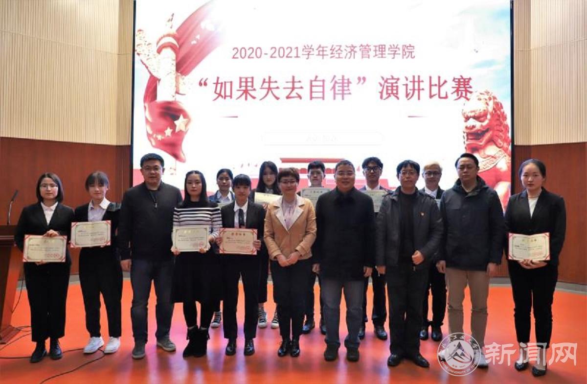 决赛评委由经济管理学院党委书记王伟宾、副书记赵洁、纪检监察办公室赵志昌、校艺术团艺术指导老师谌奕鹏、经济管理学院团委书记刘明阳共同担任。从初赛中脱颖而出的11位选手成功晋级登上了决赛舞台,同学们结合疫情期间个人的学习和生活,分享了身边的案例,讲述了个人对于“自律”的感悟。最终,来自国(国际)19班的李泽龙同学摘得桂冠。