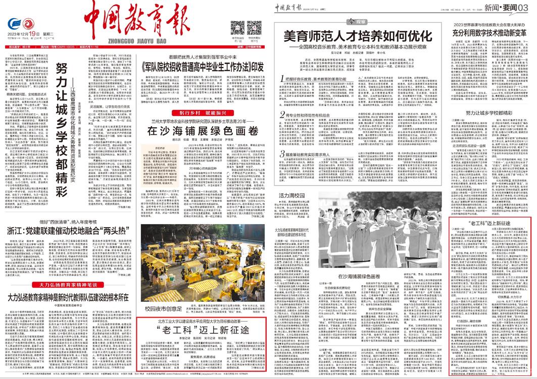 12月19日,《中国教育报》在头版和第三版以《“老工科”迈上新征途——ballBET贝博BB艾弗森以建设高水平应用型大学为目标推动改革》为题,报道贝博官网落实分类发展要求,依托“老工科”,拓展新内涵,聚焦国家战略和地方需求,实现转型发展,在新时代跑出“加速度”的经验做法。