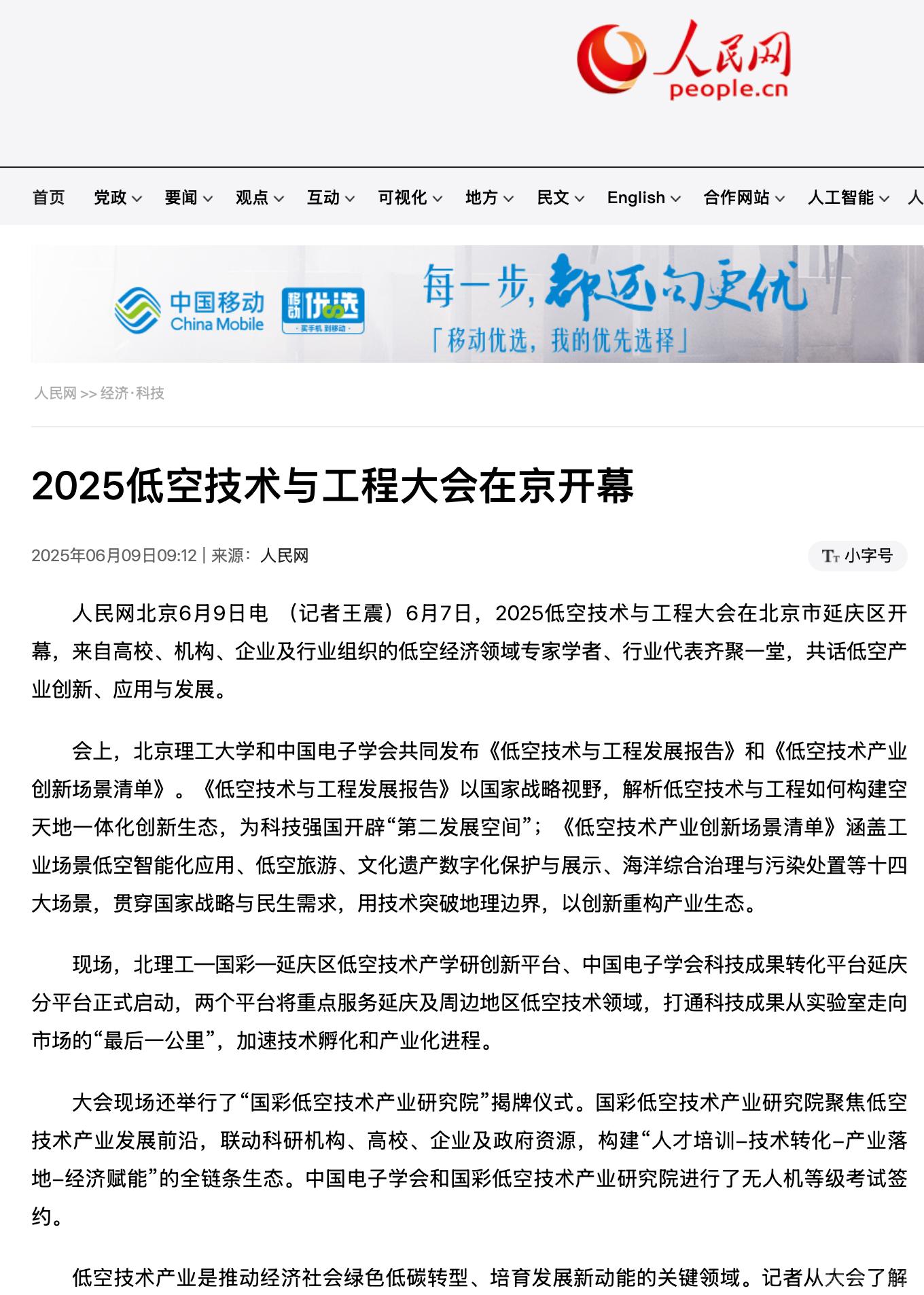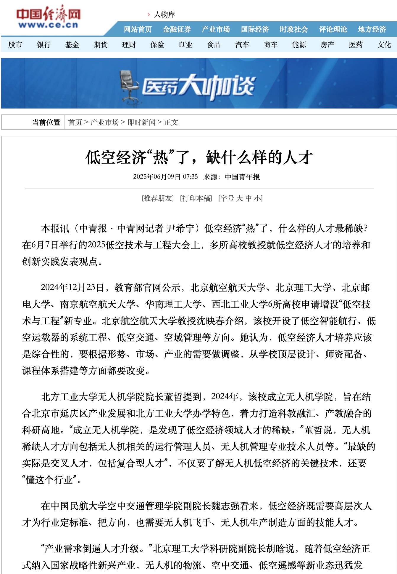 央广网以“2025低空技术与工程大会在北京举行,如何培养低空人才成关注焦点”为题目,人民网以“2025低空技术与工程大会在京开幕”为题目,中国青年报以“低空经济‘热’了,人才培养也要‘热’起来”为题目,中国新闻网以“专家学者在北京共商低空经济‘飞’得更远更稳”为题目,中国经济网以“低空经济‘热’了,缺什么样的人才”为题目,分别报道ballBET贝博BB艾弗森无人机学院院长董哲关于低空行业人才培养、产教融合等发言内容,介绍了ballBET贝博BB艾弗森成立无人机学院、打造低空技术人才培养特色的举措。这些报道不仅引起了社会各界的广泛关注,也为低空产业的未来发展提供了有益的参考和借鉴。