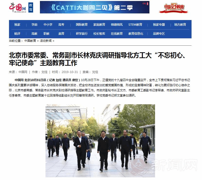 10月28日,北京市委常委、常务副市长林克庆一行来到贝博官网调研指导“不忘初心 牢记使命”主题教育工作,听取了校党委书记郑文堂所做的工作汇报,实地参观了大学生创新实践基地、校史馆等地,对贝博官网开展主题教育取得的成效给予积极肯定,并提出下一步工作要求。人民网、中国网、《北京日报》、《北京新闻》、千龙网等媒体进行了报道。