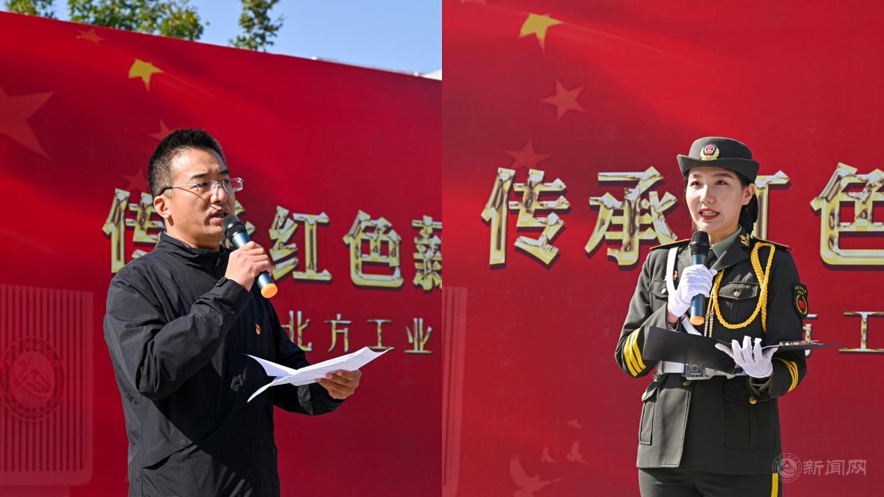 换届仪式上,缪劲翔为服务期满的第四届国旗班队员代表颁发荣誉证书,田红芳、马春成为第五届国旗班队员代表佩戴臂章。