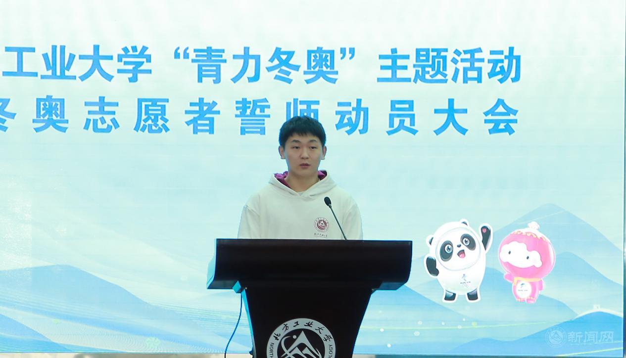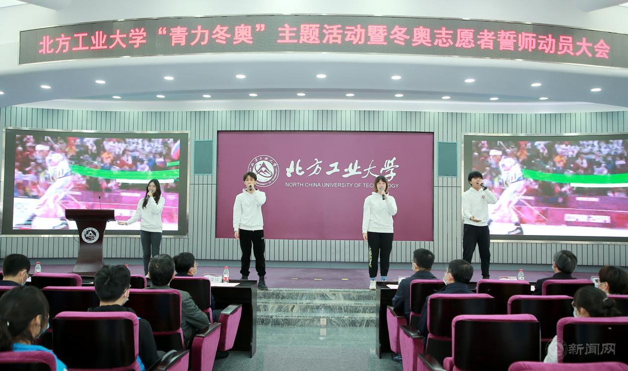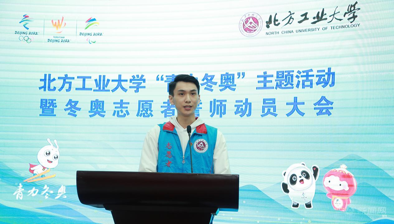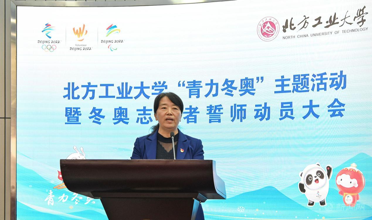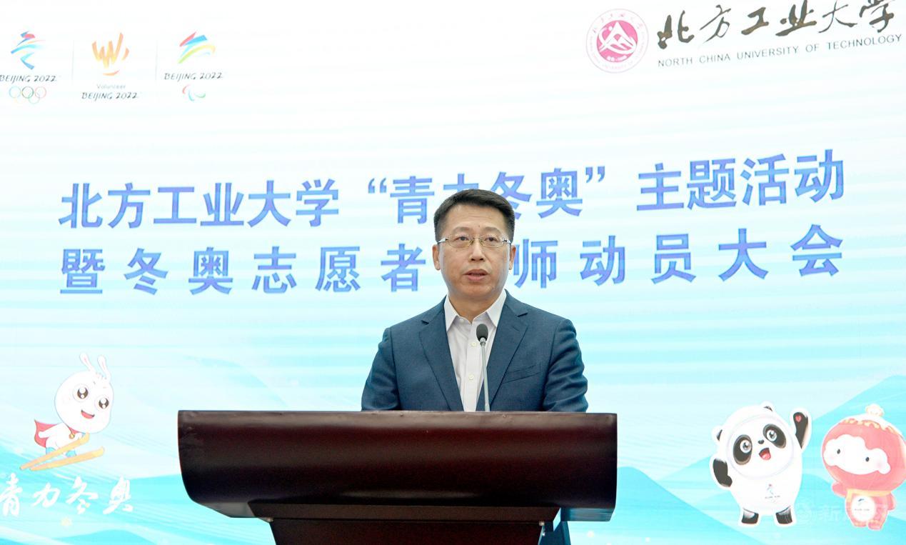 缪劲翔在誓师大会上讲话。他指出,北方工大近年来以高度的使命感和责任心为北京冬奥会的筹办不遗余力,做了大量卓有成效的工作。他向前期参与冬奥会筹办付出努力的老师和同学们表示感谢。他强调,作为新时代的中国青年,我们有幸见证并全程参与这一奥运盛会,应该倍感自豪、倍加珍惜。他指出,贝博官网派往北京冬奥组委制服与注册中心的志愿服务团队,上岗时间最早、服务时间最长、默默奋斗在幕后,是值得光荣和骄傲的。他向全体志愿者提出三点希望:一是提高政治站位,为祖国争光,为学校添彩,把服务好、保障好冬奥会当作一次重大的政治任务,当作一堂生动的思想政治教育课,在志愿服务中充分展示当代中国青年、北方工大学子的青春风采。二是提高工作标准,精精益求精,万万无一失,要以最高标准、最严要求、最大决心,向祖国、向世界交出一份圆满的答卷。三是提高安全意识,严格落实疫情防控各项要求,做到听从指挥、科学防疫,把生命安全和身体健康放在第一位。最后,他号召全体志愿者大力弘扬奥林匹克精神,积极践行志愿服务理念,为举办一届简约、安全、精彩的冬奥盛会贡献属于北方工大人的青春力量。