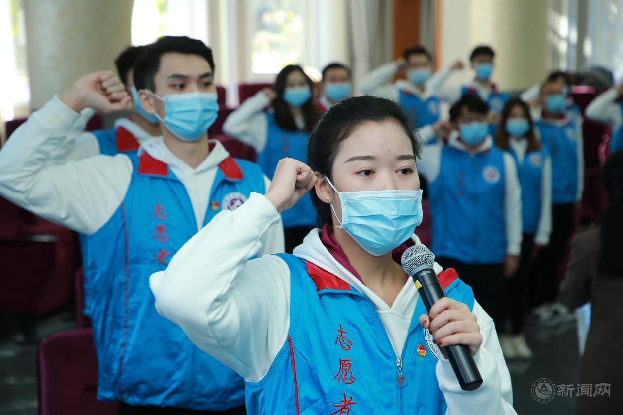 在志愿者林莉同学的领誓下,志愿者们集体作出庄严的宣誓:“我志愿参加北京2022年冬奥会和冬残奥会志愿服务,我将听从指挥、勇于担当,热情服务、团结协作,弘扬奥林匹克精神,践行志愿服务理念,为祖国争光,为冬奥喝彩,为举办一届简约、安全、精彩的冬奥盛会贡献青春力量!”同学们的铮铮誓言表达了全力以赴服务冬奥的壮志豪情,也表达了出色完成任务的坚强决心。