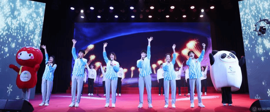 冬奥歌曲联唱《冰雪冬奥》《冰雪英雄》《冰在舞,雪在烧》《燃烧的雪花》,充满了青春阳光和运动激情。同学们用歌声表达出对2022北京冬奥会的期待,传递出梦想、拼搏与团结的力量。