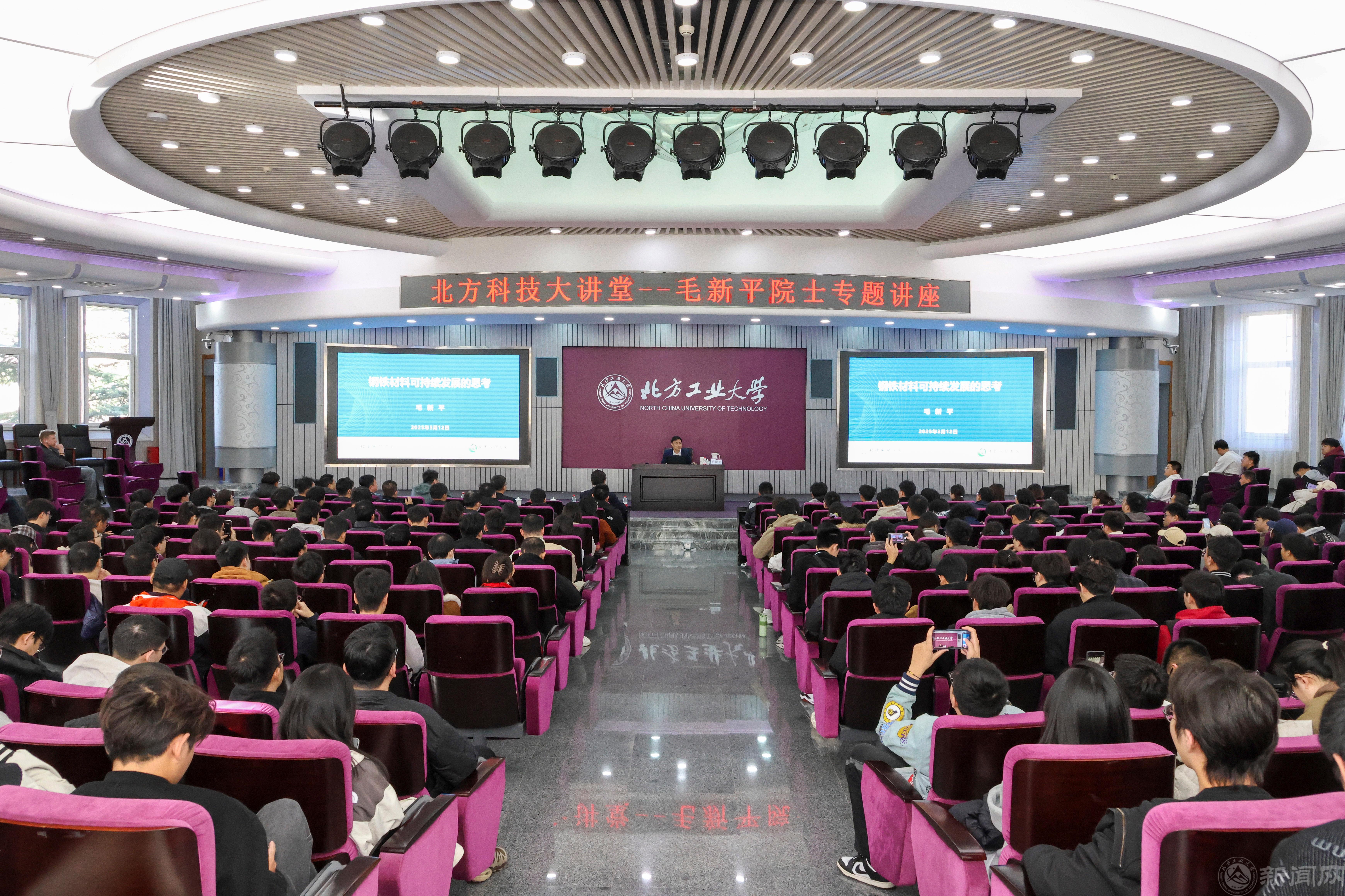 3月12日,北方科技大讲堂第8讲迎来中国工程院院士、北京科技大学碳中和研究院院长毛新平院士的专题报告。毛新平院士以《钢铁材料可持续发展的思考》为题,为贝博官网机械与材料工程学院及相关学院的300余名师生带来精彩的主旨演讲。党委副书记、校长张立峰主持报告会。