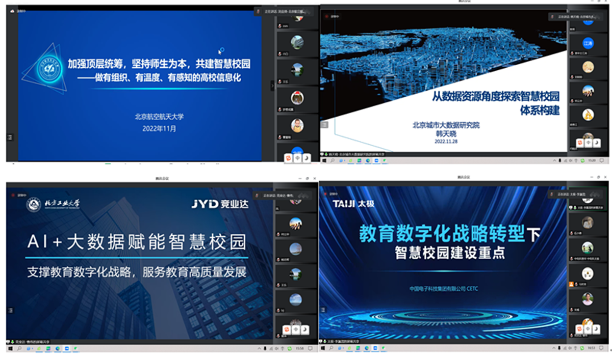 为落实《北京市教育委员会关于开展智慧教育专项规划和顶层设计评审工作的通知》精神,加快提升学校信息化工作的整体水平,11月28日下午,学校召开智慧教育专项规划和顶层设计线上研讨会。会议邀请了北京航空航天大学网络信息中心副主任刘金扬,北京城市大数据研究院有限公司副总经理韩天晓,北京竞业达数码科技有限公司副总裁、教学与校园研究院院长曹伟,北京中电普华信息技术有限公司副总经理任强,中电太极(集团)有限公司...